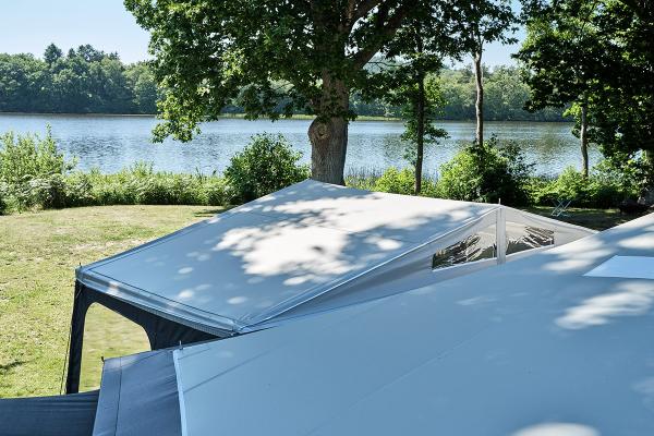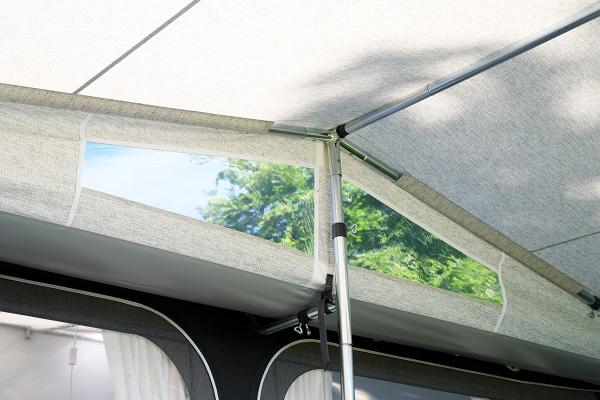 La construction de la solette en forme de panneau arrière supérieur est unique. Cela assure une bonne hauteur de solette, même si celle-ci est montée sur l’auvent Penta sous la casquette. Pour créer une bonne luminosité sous la solette, le panneau arrière est doté de deux fenêtres en hauteur.