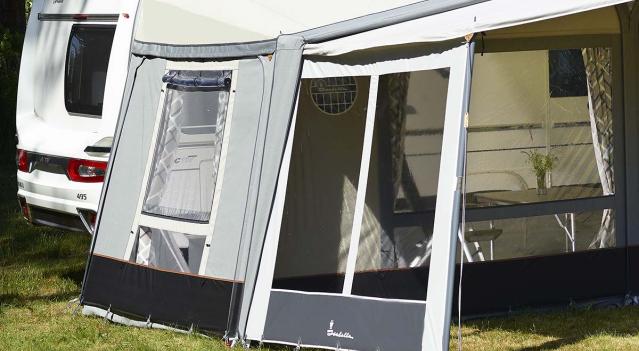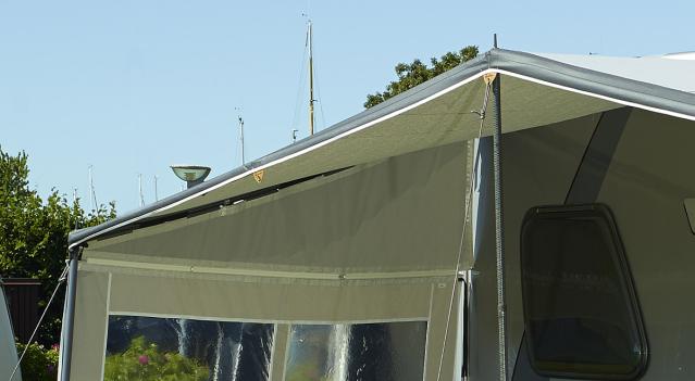 En option : Si vous souhaitez une protection supplémentaire contre le vent et le soleil, vous pouvez acheter en option un panneau latéral (261000311) pour le pare-soleil Eclipse. Ce panneau dispose de deux grandes fenêtres et peut être installé à gauche ou à droite. Si vous utilisez le panneau latéral et le pare-soleil Eclipse directement sur la caravane (sans auvent), vous devrez également acheter un Eclipse Adaptor (261000416). Il s’agit d’un petit élément qui se fixe au-dessus du panneau latéral et garantit une connexion étanche entre le pare-soleil et la caravane.