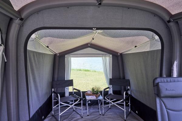 Agrandissez votre auvent Ventura AIR et obtenez de l'espace supplémentaire, que vous souhaitiez un petit coin salon confortable ou un espace de couchage supplémentaire. L'annexe se zippe facilement sur le côté gauche ou droit de l'auvent et s'adapte à tous les modèles Ventura Air. L'annexe est un espace idéal pour une petite table de café et deux chaises. Rideaux inclus.