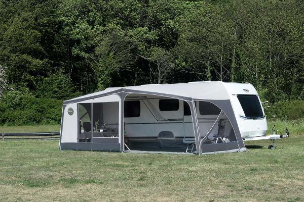 De Sun Shine Plus is nog makkelijker te veranderen in een reistent. Deze zeer stabiele luifel met een minimaal gewicht is met twee bij te bestellen inritsbare frontdelen in een handomdraai om te toveren tot een lichte reistent.