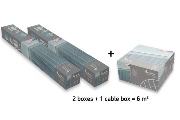 2 × 3 m2 panele aluminiowe (dodaj dwa opakowania do koszyka) + 1 × kabel grzejny do podłogi o powierzchni 6 m2 (dodaj jedno opakowanie do koszyka)