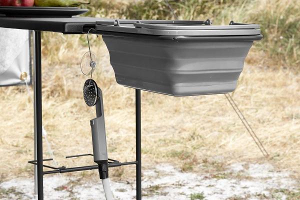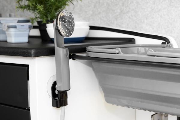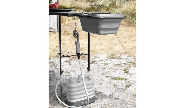 Praktyczny, nieodzowny na kempingu kran do wody. Posiada dwufunkcyjną końcówkę - do kąpieli i jako kran kuchenny. Będziesz więc już zawsze mieć pod ręką prysznic oraz narzędzie do mycia w swoim bagażu. Kran napełnia się ponownie, a jego końcówka jest wymienna. Pasuje zarówno do Camp-letów, jak i do kuchni wolnostojących.