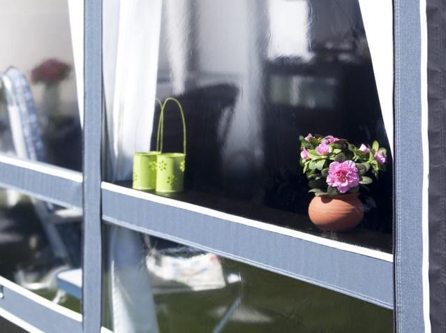 Tkanina przedsionka w markizach VILLA wykonana jest z materiału Isacryl firmy Isabella, który jest oddychającym materiałem zapewniającym najlepszy możliwy klimat wewnątrz przedsionka.