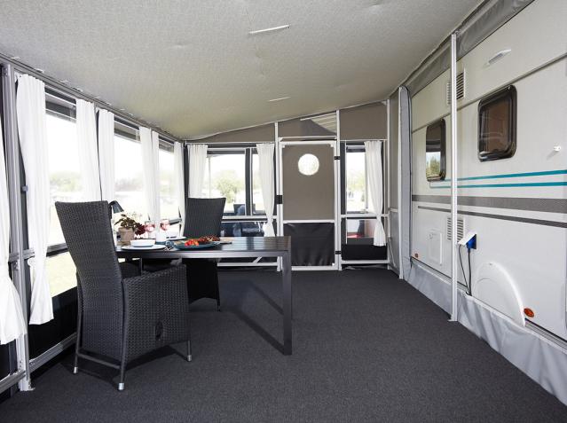 W zależności od tego, ile miejsca potrzebujesz, możesz wybrać VILLA 300 o głębokości 3 metrów lub VILLA 370 o głębokości 3,7 metra. Możesz także wybierać spośród 5 długości od 550 do 950 cm, aby dopasować przyczepę kempingową do swojego stałego kempingu.