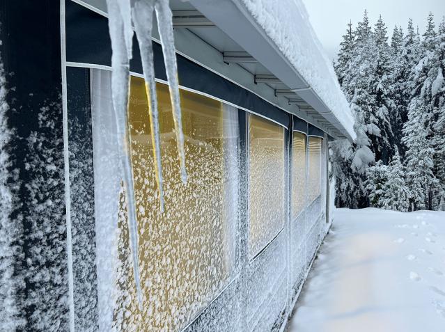 VILLA jest skonstruowana tak, aby mogła stać przez cały rok i wytrzymać zmienne warunki pogodowe. Specjalnie zaprojektowany dach VILLA jest pochyły, co minimalizuje gromadzenie się śniegu i zmniejsza obciążenie przedsionka. Materiał okna może wytrzymać temperatury nawet do minus 38 stopni, dzięki czemu przedsionek nadaje się do użytku zimowego.