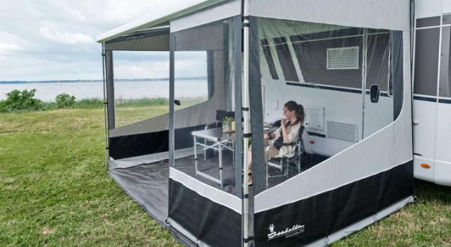 Isabella Buddy to trwały i stylowy przedsionek przeznaczony do samochodów kempingowych. Jest łatwy w montażu i zapewnia dodatkową przestrzeń życiową na zewnątrz pojazdu.