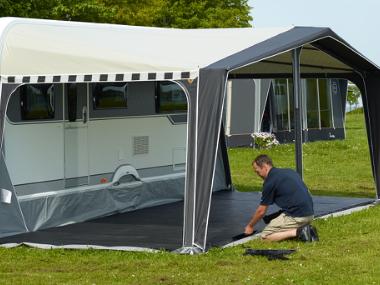 Przedsionki są często szersze wewnątrz, przy przyczepie kempingowej, niż z przodu. Dlatego dobrze jest wiedzieć, jak jest powierzchnia podłogi przed zakupem wykładziny lub innej podłogi.