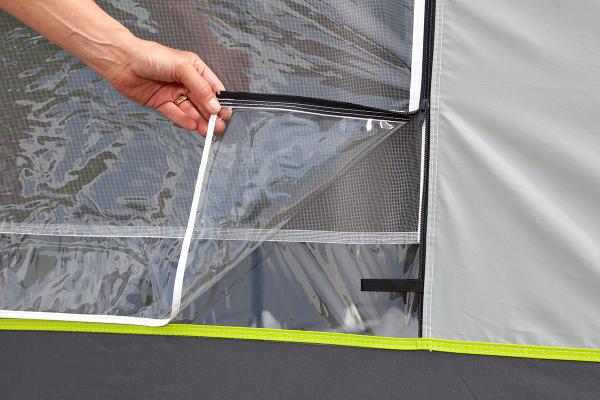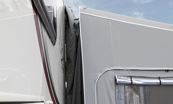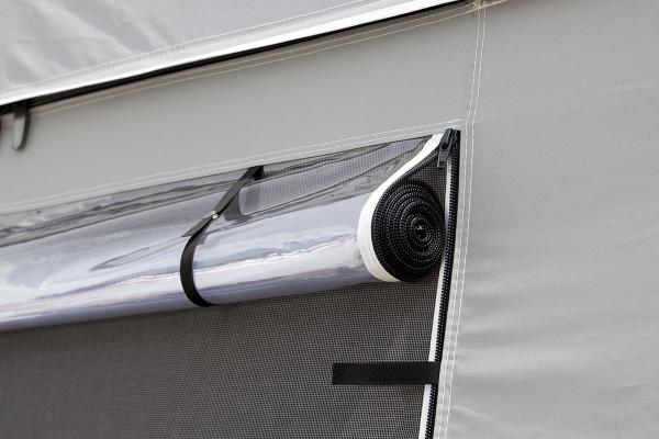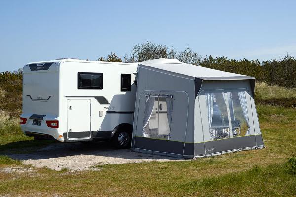 Für Tagesausflüge mit dem Mobil kann der Freestander Cumulus schnell vom Fahrzeug getrennt werden und frei stehen bleiben. Variables Anschlusssystem mit zwei senkrechten Reißverschlüssen in der Rückwand und einer Schleuse. Wahlweise kann die Schleuse einfach über das Fahrzeug abgespannt oder mit einem Keder (2 verschiedene Höhen) eingezogen werden. Alle Front- und Seitenteile sind zu einer Veranda herabrollbar oder komplett herausnehmbar.