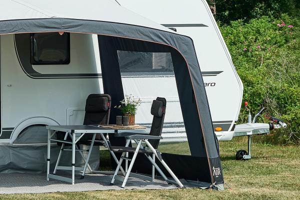 Als Windschutz vor dem Wohnwagen, ist ein Seitenteil für das Arc-Sonnendach erhältlich. Das Seitenteil besteht aus Acryl, hat ein großes Fenster und kann sowohl auf der rechten als auch auf der linken Seite des Sonnendachs verwendet werden.