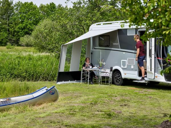 Créez un coin confortable et abrité avec le Cosy Corner Levo. Parfait pour un moment de tranquillité à l'ombre ou une pause café relaxante devant votre caravane, camping-car ou van. Le Cosy Corner Levo est conçu pour être extrêmement facile à monter : il tient avec un seul piquet et peut être déplacé le long du rail de la caravane ou du rail du store pour un positionnement optimal.