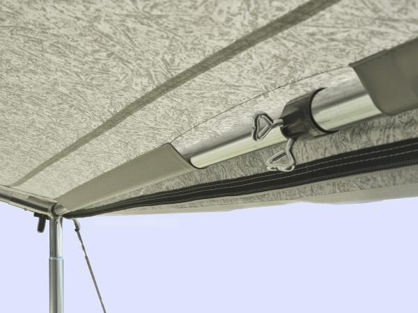 Aspirer ou brosser l’auvent quand il est sec. Par la suite, essuyer avec un chiffon humide.