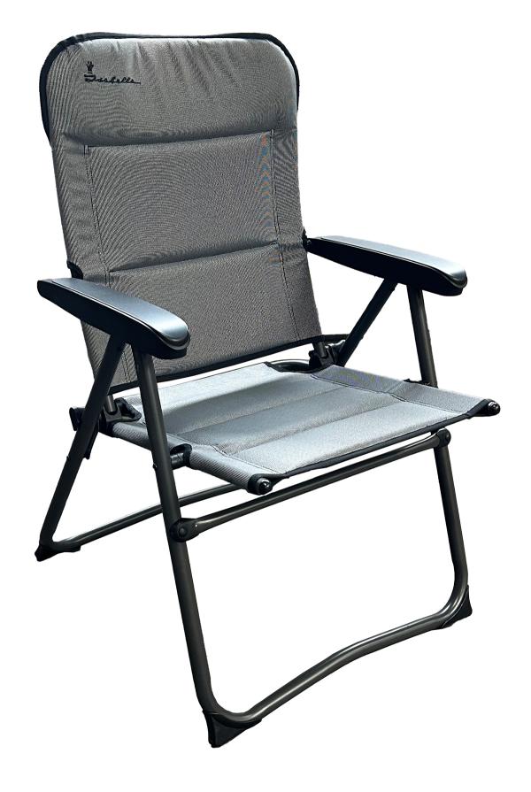 De Nanna stoel is een lichte en comfortabele campingstoel die perfect is voor in de voortent, op het terras of rondom je Camp-let. Dankzij het compacte formaat en het lage gewicht neem je hem gemakkelijk mee – of het nu is voor een kopje koffie bij de voortent of om te ontspannen onder de open hemel. De rugleuning is verstelbaar in 3 standen, zodat je altijd een comfortabele zitpositie kunt vinden – of je nu wilt eten, lezen of een dutje in de zon wilt doen. De stoel kan tot 120 kg dragen.