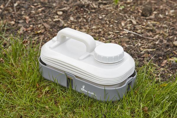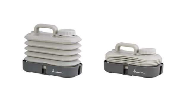 Makkelijk voor onderweg. De watertank kan eenvoudig worden opgevouwen en bespaart door de platte vorm veel ruimte.