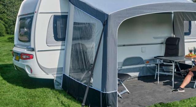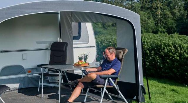 Ventura AIR Sol to przestronny przedsionek pompowany, który zapewnia dodatkowy cień i osłonę przed Twoją przyczepą kempingową. Dzięki inteligentnemu systemowi powietrznemu, w którym wszystkie tuby powietrzne są połączone, możesz szybko nadmuchać go z jednego zaworu, zminimalizować ryzyko nieszczelności i cieszyć się daszkiem przeciwsłonecznym, który pozostaje stabilny nawet przy zmiennej pogodzie. Sol tworzy zadaszony obszar o wymiarach 250 x 400 cm i pomaga utrzymać niską temperaturę w przyczepie kempingowej, ponieważ słońce nie wpada przez okna.