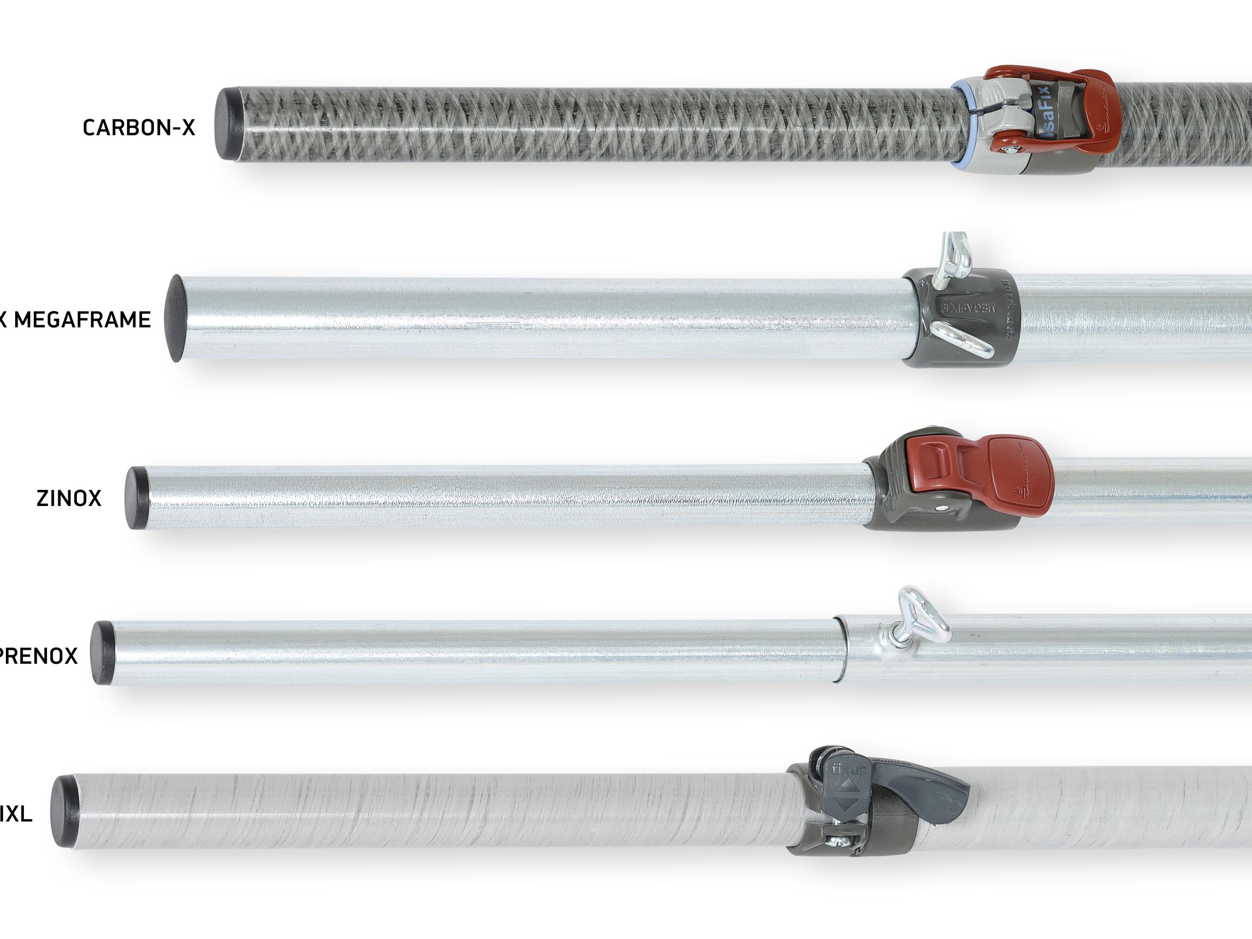 Stalowy stelaż Zinox nadaje się również na kempingi stałe i sezonowe. Stelaż został wykonany z tego samego materiału co MegaFrame, ale z rurek o mniejszej średnicy, a narożniki i krzyżaki są odlane z tworzywa sztucznego. Stelaż z rur stalowych Zinox nadaje się szczególnie do biwakowania poza sezonem, dlatego stosujemy go również w przedsionkach Universal i zimowych.